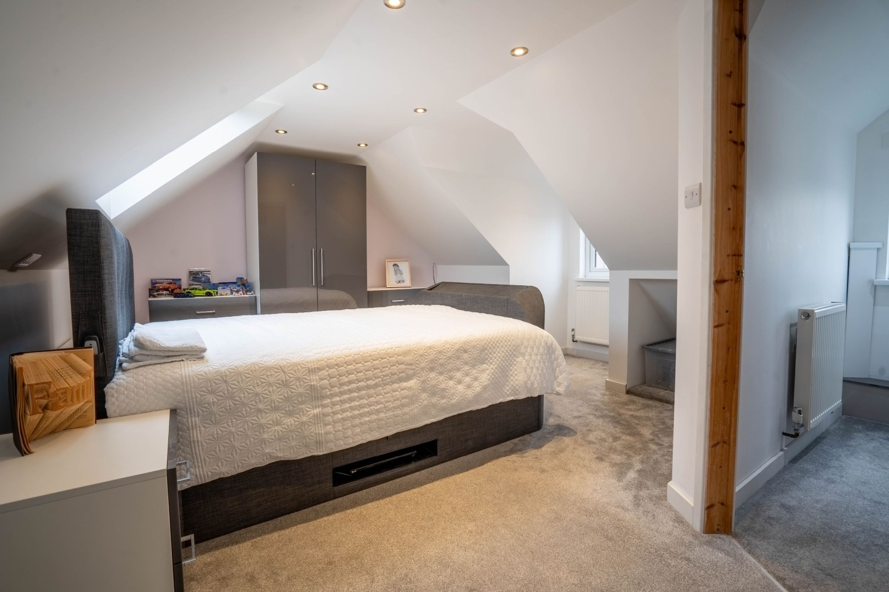 The property continues to impress with a superb loft conversion, creating a private top-floor suite. This thoughtfully designed space includes a sitting area with Velux windows, eaves storage, a double bedroom, and its own WC.