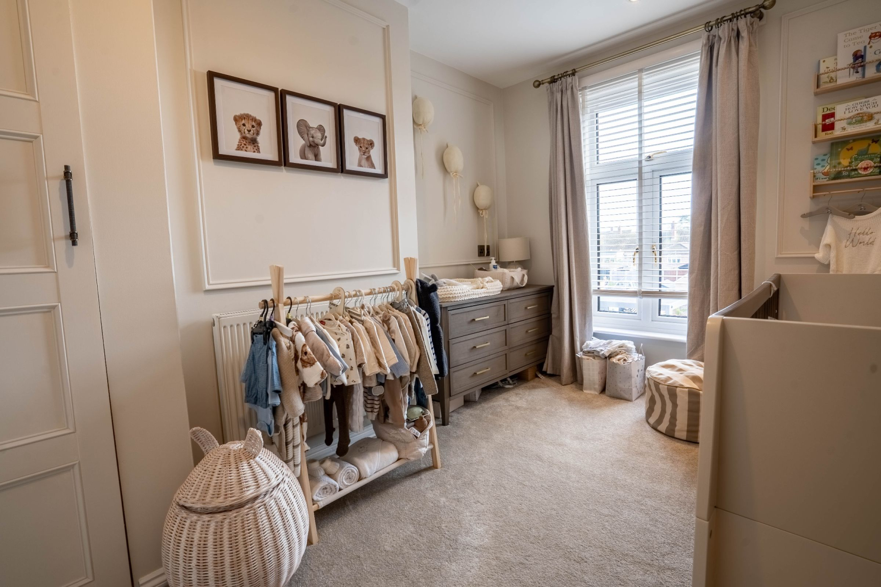 Upstairs, two beautifully presented double bedrooms await, each finished to perfection with elegant décor and fitted wardrobes that maximise space and style. The family bathroom completes the picture, featuring a panelled bath with mains-fed shower above, WC, and wash basin - all finished in a fresh, contemporary palette.